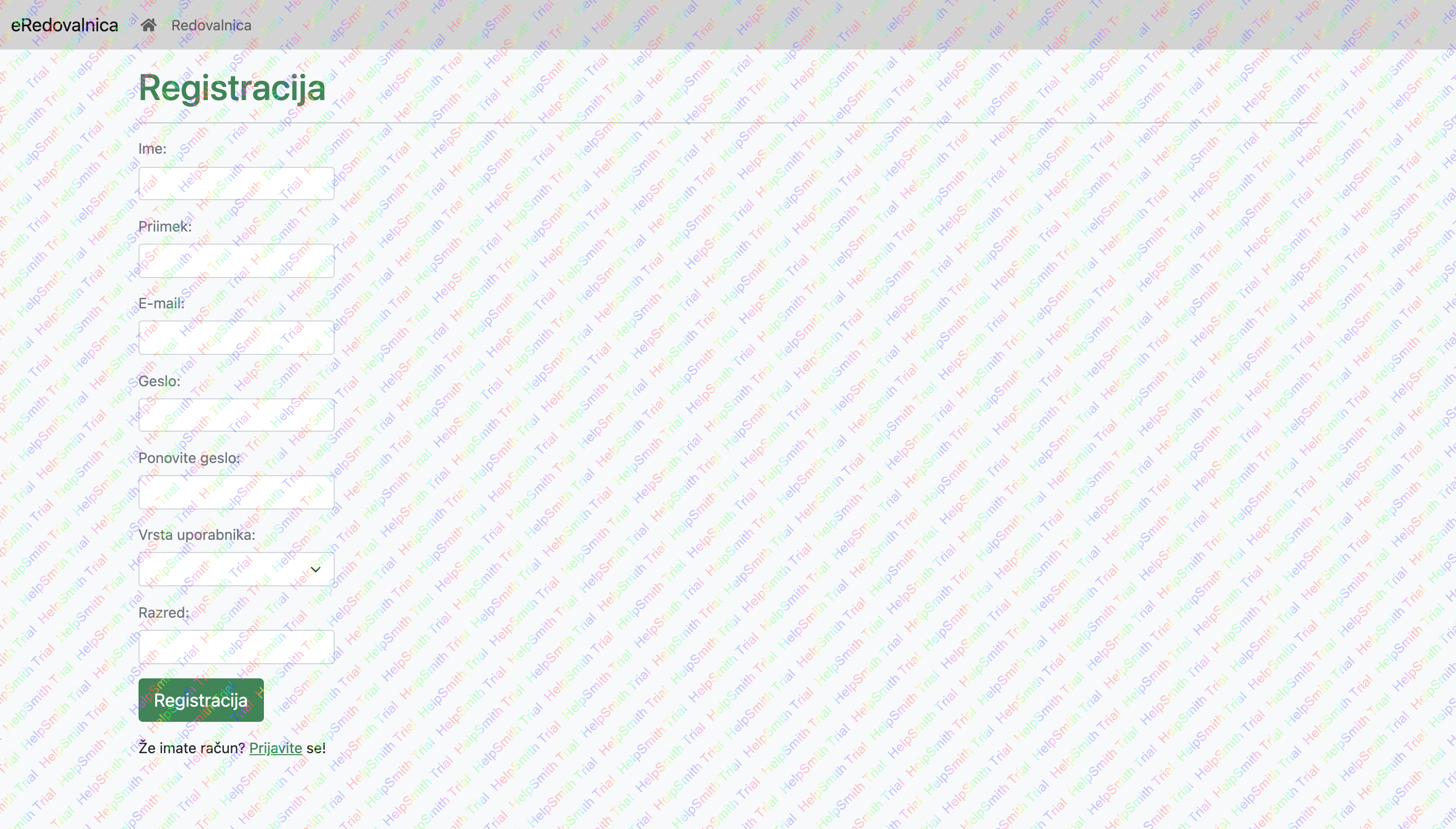 Datoteka register.php vsebuje obrazec za registracijo uporabnika.